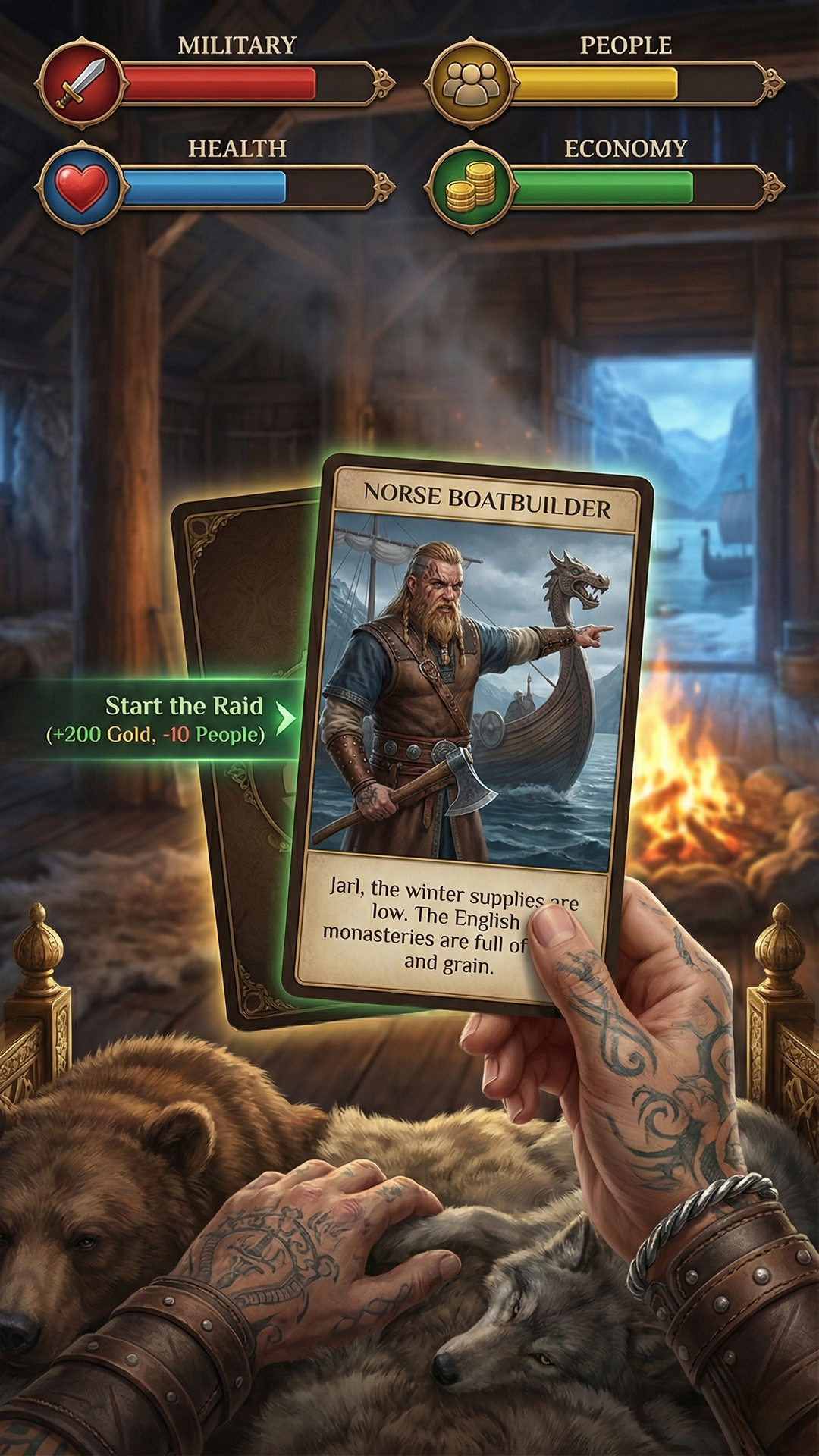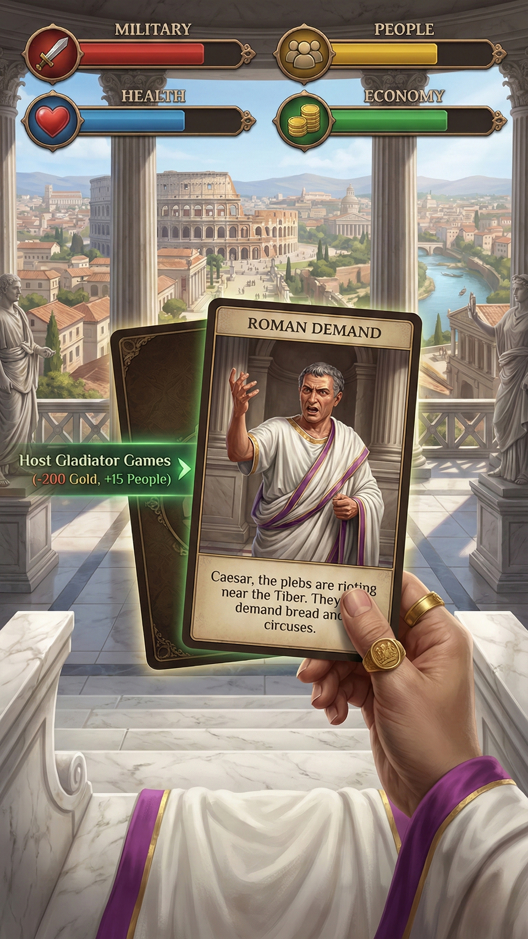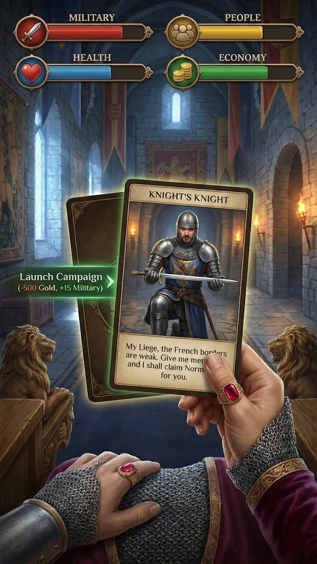 Welcome to a world where every decision matters. You will govern not with a sword, but with a deck of cards, each presenting a dilemma, a request, or an opportunity from your subjects, allies, and enemies. A simple swipe to the left or right will determine your path, but the consequences of your choices will echo for generations.